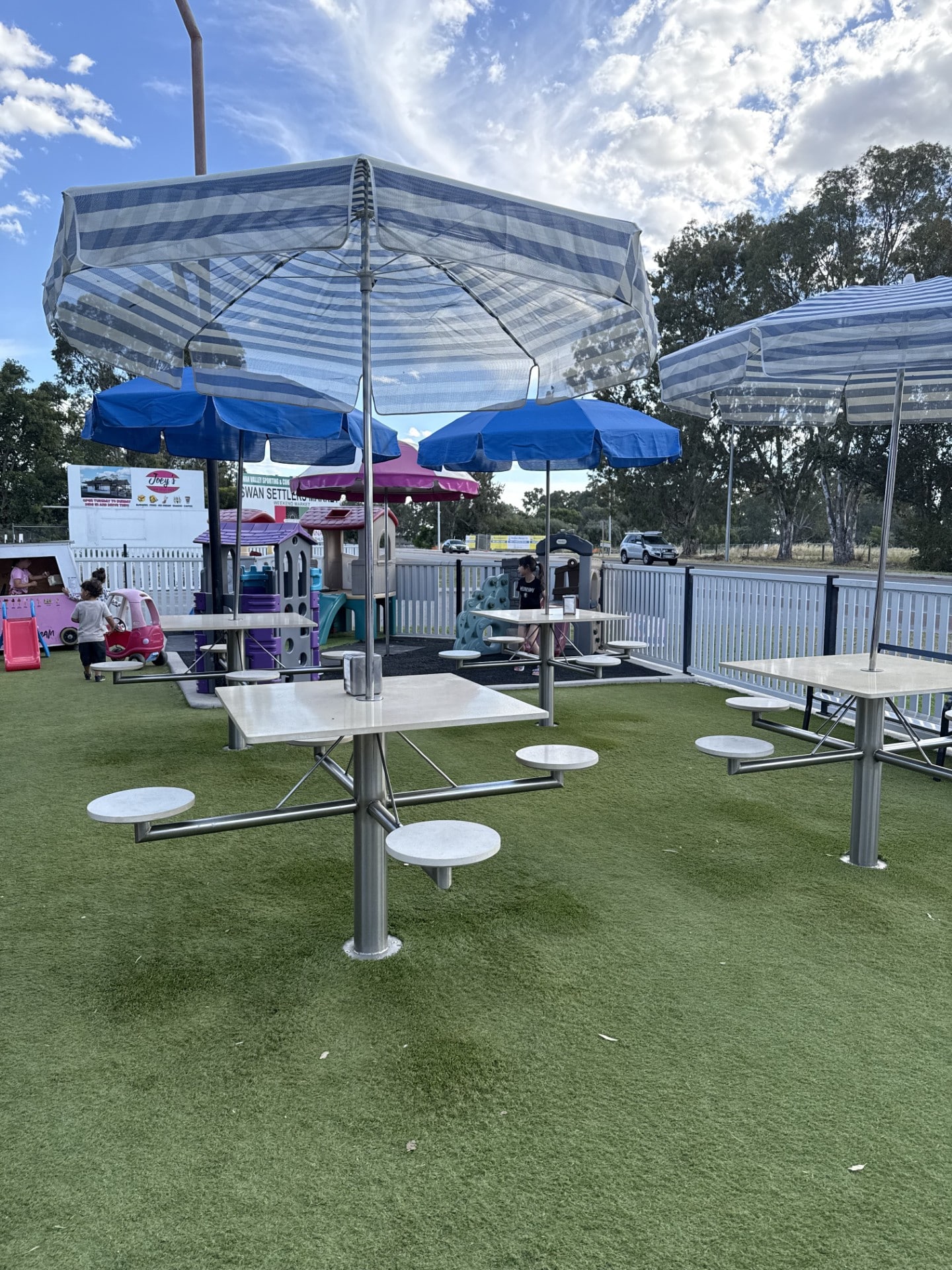 At the cute retro drive through, Joeyโs Swan Valley Diner, the whole family will love to order their traditional burgers plus a delicious milkshake to go. There are dine-in tables available in a small garden area, overlooking a sandpit and play area too.