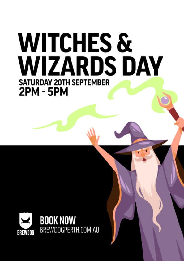 Brewdog 160 Gordon Street, West PerthDOUBLE, DOUBLE, FUN AND TROUBLE! Saturday 20th September is all about witches, wizards and a little bit of magic! From 2-5pm, young spellcasters can craft their own wands at our Wand Workshop, then meet witches and wizards for sparkling glitter tattoos. Plus live music from 2:30pm, and enchanting fun for the whole family. Book your table now! BOOK NOW