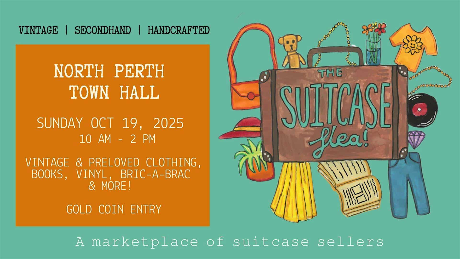 North Perth Town Hall 26 View Street, North Perth, WA, AustraliaA fun, new marketplace of suitcase sellers! Vintage, second-hand and handcrafted treasures.. what will you find?A fun, new marketplace of suitcase sellers! Vintage, second-hand and handcrafted treasures.. what will you find?Enjoy this friendly rummage style market...North Perth Town HallSunday 19th October10am - 2pmGold coin entryVintage & preloved clothing, books, bric-a-brac, and more!Interested in becoming a stall holder?Email [email protected] with details/images […]